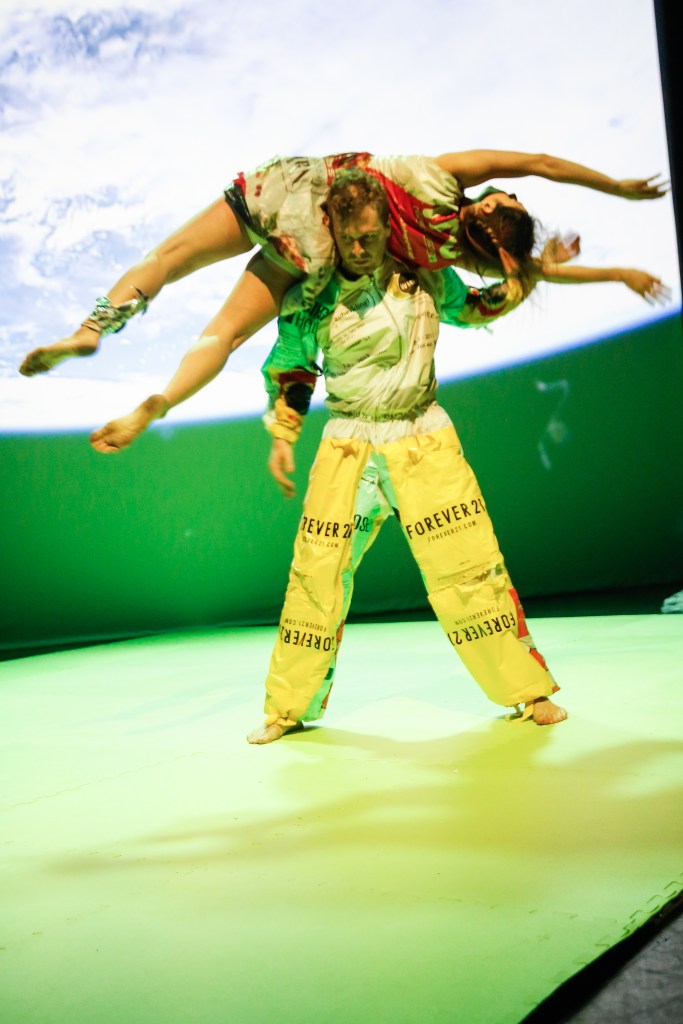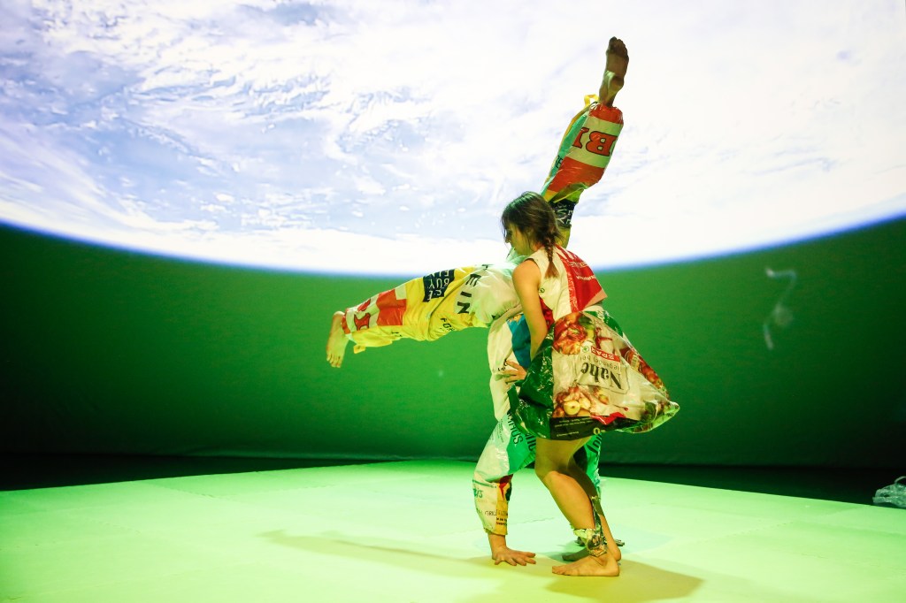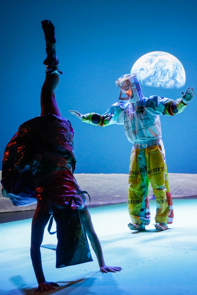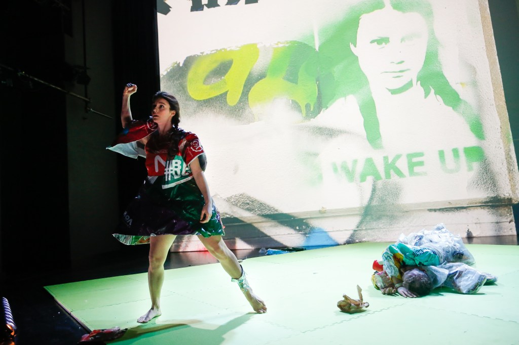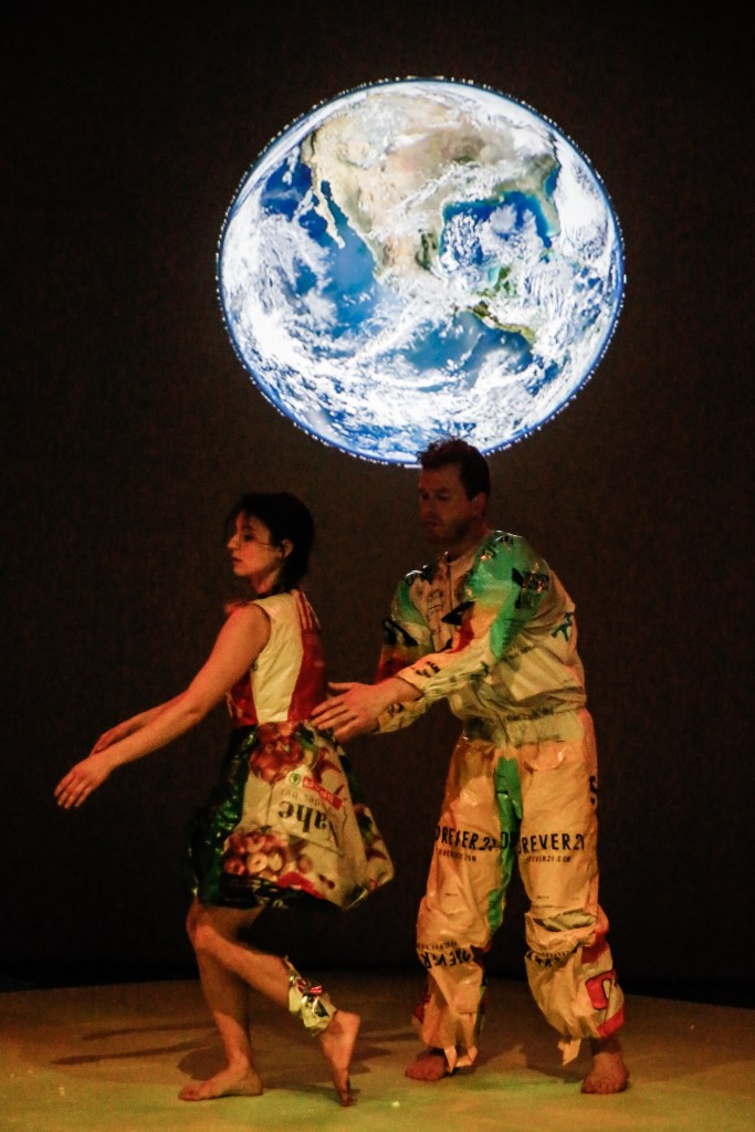 In der mit visuellen Elementen ausgeschmückten Produktion performen die Italienerin Elda Gallo und der polnische Lukasz Czapski. In Kostümen aus Einkaufstaschen und Plastiksackerln führen sie uns den globalen Überkonsum vor Augen.